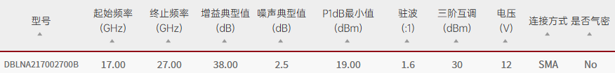Qotana/DBLNA217002700B/DBLNA217002700B宽带可变增益低噪声放大器17GHz~27GHz