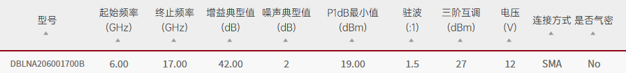 Qotana/DBLNA206001700B/DBLNA206001700B宽带可变增益低噪声放大器6GHz~17GHz
