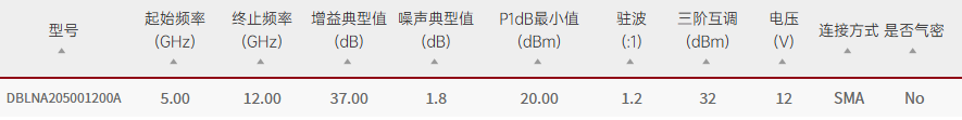 Qotana/DBLNA205001200A/DBLNA205001200A宽带可变增益低噪声放大器5GHz~12GHz
