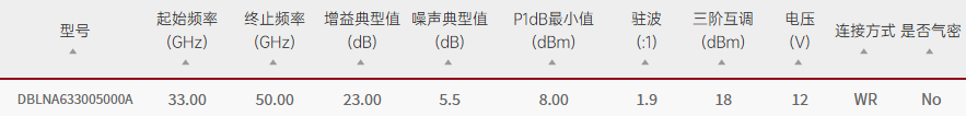 Qotana/DBLNA633005000A/DBLNA633005000A低噪声放大器33GHz ~ 50GHz