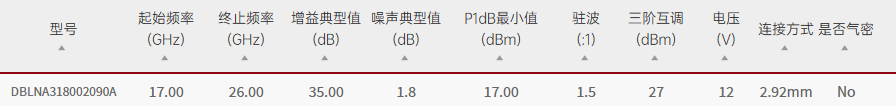 Qotana/DBLNA318002090A/DBLNA318002090A宽带低噪声放大器17GHz~26GHz