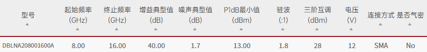 Qotana/DBLNA208001600A/DBLNA208001600A宽带低噪声放大器8GHz~16GHz