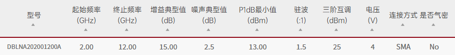 Qotana/DBLNA202001200A/DBLNA202001200A超宽带低噪声放大器2GHz~12GHz