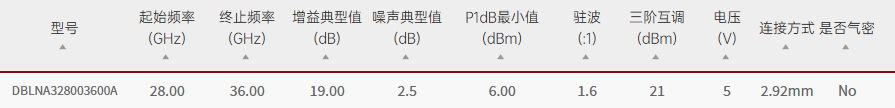 Qotana/DBLNA328003600A/DBLNA328003600A宽带低噪声放大器28GHz~36GHz