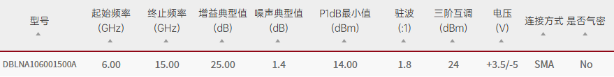 Qotana/DBLNA106001500A/DBLNA106001500A宽带低噪声放大器6GHz~15GHz