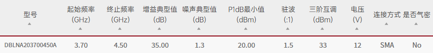 Qotana/DBLNA203700450A/DBLNA203700450A宽带低噪声放大器3.7GHz~4.5GHz